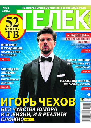 Еженедельник «ТЕЛЕК» является доброй семейной газетой, увлекательным рассказчиком и хорошо информированным советчиком. С ней всегда можно провести время интересно и с пользой.Подробный телегид позволяет читателям хорошо ориентироваться в мире телекино и телепрограмм.