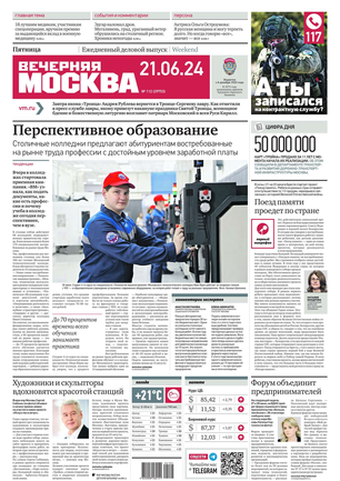 «Вечерняя Москва» — ежедневная российская вечерняя газета, старейшее из вечерних изданий в России, учрежденное в 1923 году. Выходит пять дней в неделю, кроме субботы и воскресенья. Отличается тем, что рассказывает о событиях еще не завершившегося дня. Оперативно освещает хронику и особенности жизни Москвы, охватывает все слои общества и большинство профессиональных и возрастных групп читателей.Издание представлено тремя выпусками – утренним ежедневным, вечерним (выходит три раза в неделю), еженедельным (выходит по четвергам).
