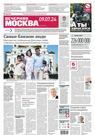 «Вечерняя Москва» — ежедневная российская вечерняя газета, старейшее из вечерних изданий в России, учрежденное в 1923 году. Выходит пять дней в неделю, кроме субботы и воскресенья. Отличается тем, что рассказывает о событиях еще не завершившегося дня. Оперативно освещает хронику и особенности жизни Москвы, охватывает все слои общества и большинство профессиональных и возрастных групп читателей.Издание представлено тремя выпусками – утренним ежедневным, вечерним (выходит три раза в неделю), еженедельным (выходит по четвергам).