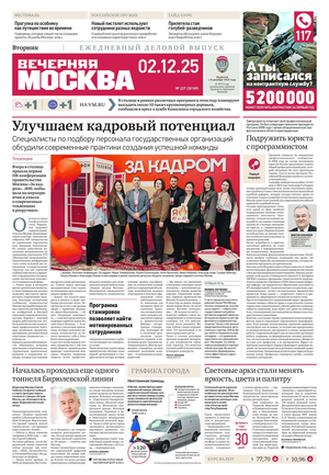 «Вечерняя Москва» — ежедневная российская вечерняя газета, старейшее из вечерних изданий в России, учрежденное в 1923 году. Выходит пять дней в неделю, кроме субботы и воскресенья. Отличается тем, что рассказывает о событиях еще не завершившегося дня. Оперативно освещает хронику и особенности жизни Москвы, охватывает все слои общества и большинство профессиональных и возрастных групп читателей.Издание представлено тремя выпусками – утренним ежедневным, вечерним (выходит три раза в неделю), еженедельным (выходит по четвергам).